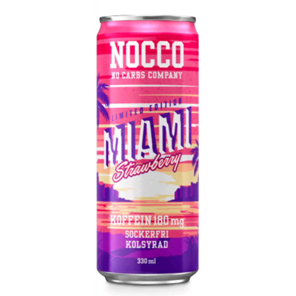 Släck törsten och fyll på energin med NOCCO Miami 33 cl: kolsyrat vatten med ton av guava och citrus, berikat med 5 g grenade aminosyror för snabb återhämtning, 100 mg koffein för extra driv och en cocktail av vitaminer (B₃, B₅, B₆, B₁₂, D₃) som stödjer både immunförsvar och energiomsättning. Den rena, sockerfria formulan gör drycken till en funktionell kompanjon både under långa studier, intensiva pass och stressiga dagar.